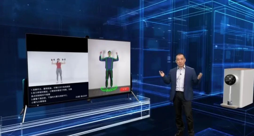 此次新品推出的亮点应用——AI健身即备受运动爱好者青睐。相比目前市面配置2D摄像头的智能彩电,康佳此次发布的旗舰新品从根本上解决了此前2D健身应用中支持动作有限、代入感不强、纠姿不到位等痛点,增加了Z向维度和尺度信息,实现了更精准的3D骨架跟踪和动作捕捉——从仰卧起坐、深蹲,到跪姿俯卧撑、卷腹——让AI“私教”居家常驻的概念真正落地。